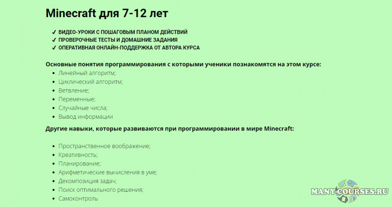 На курсе «Программирование Minecraft для 7-12 лет» ребенок научится: